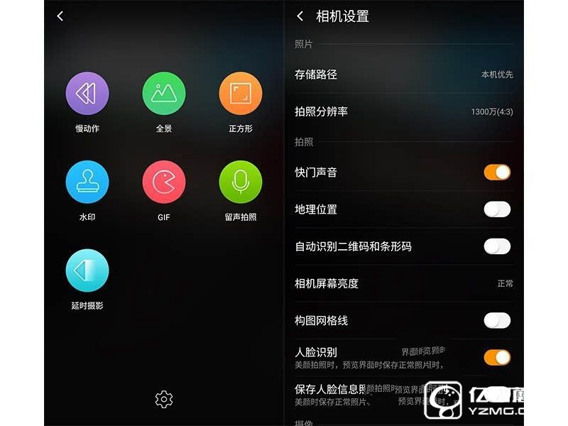 豐富的拍照設置選項