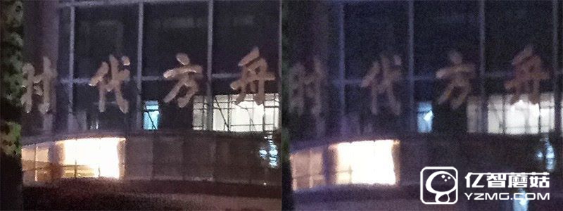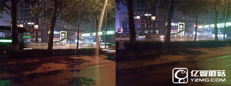 首先來看一組夜景樣張。左圖為夜景模式,右圖為普通拍照模式。