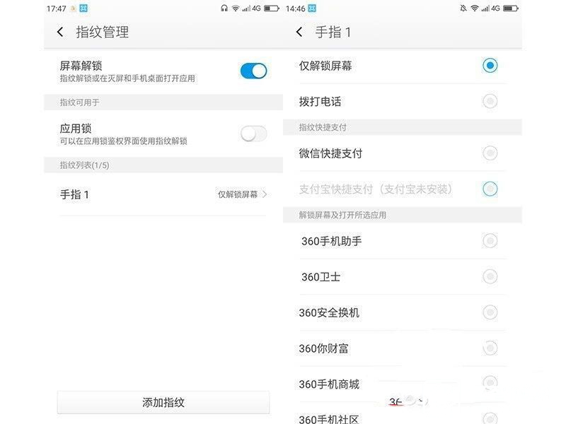 360手機N4的指紋設置界面十分簡單,用戶可以實現指紋拍照、錄音、接聽電話功能,而開啟隱私空間等指紋操作需要在對應app進行設置。