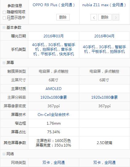 nubia Z11 Max與OPPO R9 plus配置參數全面對比: