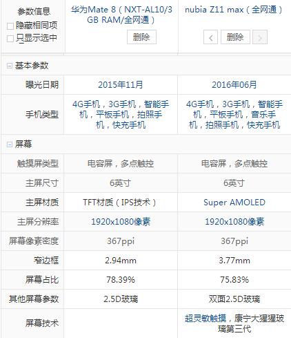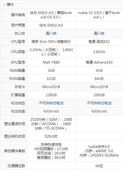 nubia Z11 Max與華為Mate8配置參數全面區別對比: