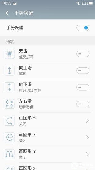 除了界面視覺效果,F(xiàn)lyme5為魅藍(lán)3s提供的操作優(yōu)勢也非常明顯。魅藍(lán)3s的指紋識別按鍵同樣是輕按返回設(shè)計。另外在設(shè)置-輔助功能-手勢喚醒當(dāng)中可以看到很多不同的模式,最為大家所熟悉的應(yīng)該是雙擊點(diǎn)亮屏幕。結(jié)合雙擊熄屏,這樣的操作感的確極其舒爽。而向上滑解鎖、向下滑打開通知面板等更是能夠大大提升用戶操作魅藍(lán)3s時的使用效率。