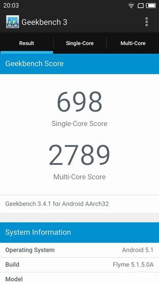 使用GeekBench3測試魅藍(lán)3s的處理器性能,我們得到了該機(jī)單核/多核成績分別為698分/2789分,屬于目前Android中端機(jī)型成績;圖形處理器方面,使用3DMark的“暴風(fēng)雪”場景測試得到了8500分。
