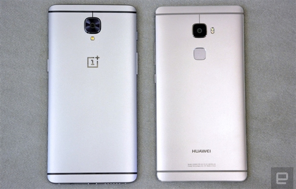從外形上來看,一加3采用正面按壓式指紋識別,左右兩顆電容點狀觸控按鍵,側邊到背部是一體成型的金屬機身,上部T形設計,攝像頭有金屬包邊,但隆起還是很明顯的,外媒也故意將其和華為Mate S擺在一起,于是……