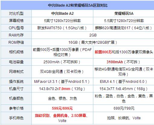 中興Blade A2與榮耀暢玩5A區(qū)別對比