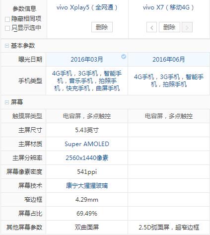 vivo X7和vivo Xplay5配置參數(shù)詳細(xì)對(duì)比: