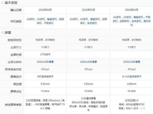 首先要了解的是這幾款手機(jī)的基本參數(shù),話不多說(shuō),看圖。