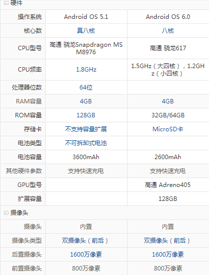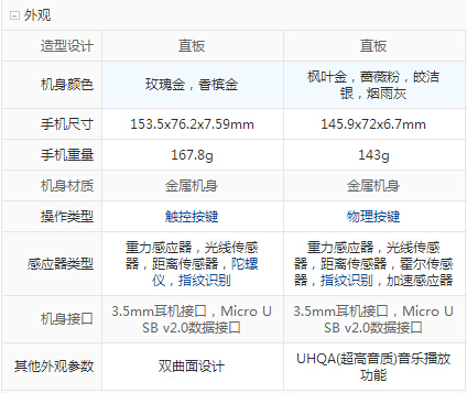 三星 C5和vivo xplay5配置參數詳細對比: