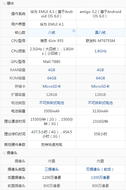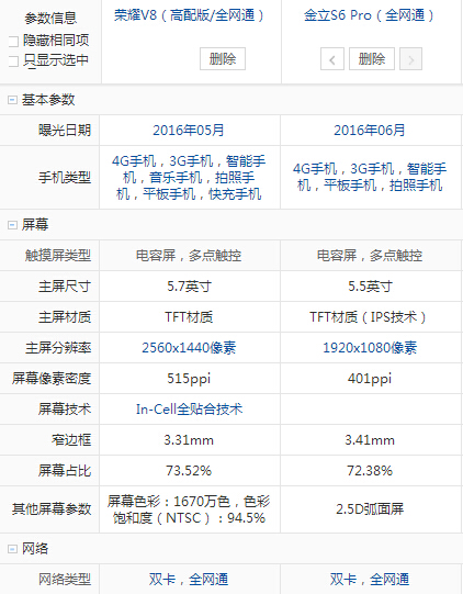 榮耀 V8和金立 S6 Pro配置參數(shù)詳細(xì)對(duì)比:
