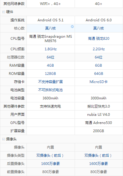 努比亞 Z11和Z11 mini配置參數詳細對比: