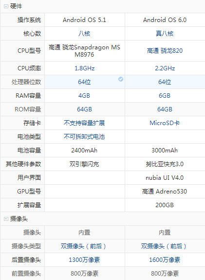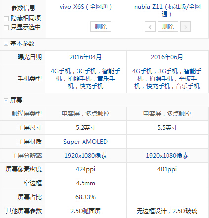 努比亞 Z11和vivo X6S配置參數(shù)詳細對比: