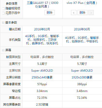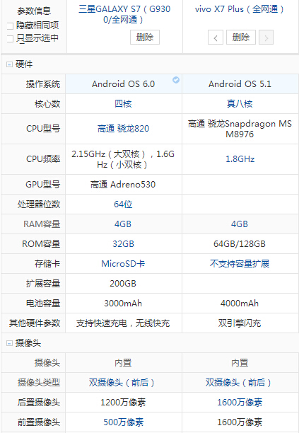 三星S7和vivo X7 Plus配置參數(shù)詳細(xì)對(duì)比: