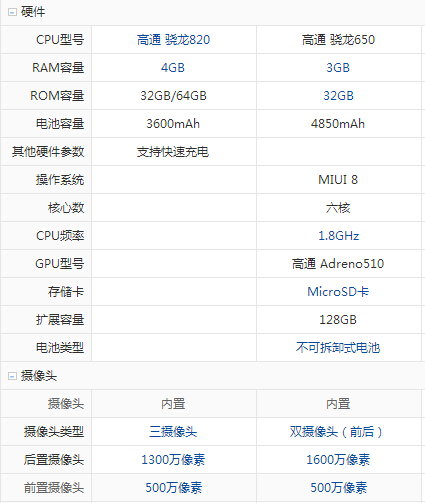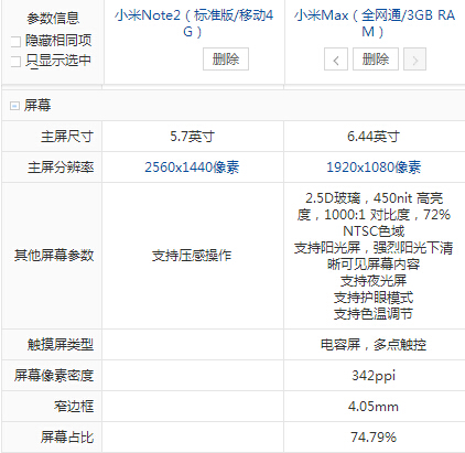 小米Note 2和小米 MAX配置參數(shù)詳細(xì)對(duì)比: