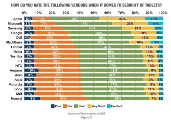 除了智能手機(jī)之外,Tech Pro Research的最新報(bào)告還涉及到平板設(shè)備的安全性排名,其中蘋(píng)果仍然是排名第一,剩下的十四名分別是(按前后順序):微軟、三星、谷歌、戴爾、黑莓、聯(lián)想、諾基亞、東芝、LG、HTC、亞馬遜、宏?、華碩、摩托羅拉、索尼、微星和華為。無(wú)論是哪份排名,蘋(píng)果無(wú)疑都是最大贏家。