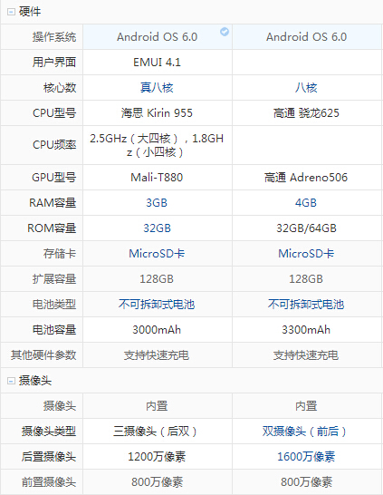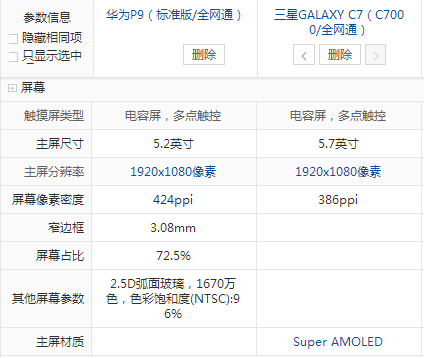 三星 C7和華為P9配置參數(shù)詳細對比: