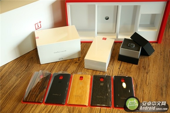 打開本次的評測大禮包就可以發現,它里面分為四個儲物格,從左到右依次是一加手機的VR眼鏡、一加手機3、五款不同材質的一加后殼、一加車載充電器。