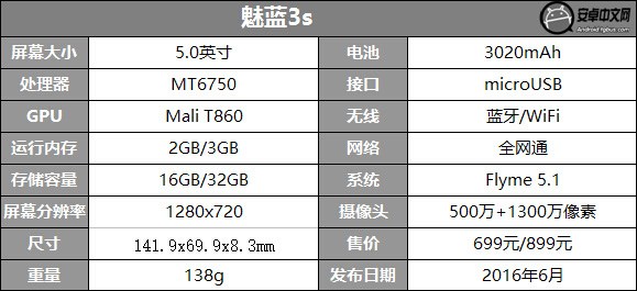 2016年6月13日,魅族在中國電影導演中心發(fā)布了新機--魅藍3s,該機在魅藍3大受歡迎的基礎上,增添了指紋識別、全金屬機身等諸多亮點,而其售價僅699元起,再次拉起了國內(nèi)市場的質(zhì)價比手機熱潮。