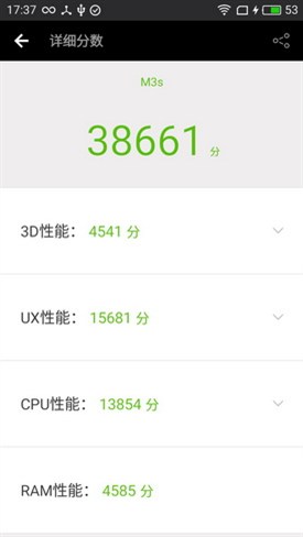 使用安兔兔簡單跑個分,成績保持在39000左右,相比上一代魅藍采用的MT6753提升很大,特別是GPU的增強,讓魅藍3s打打休閑游戲看看高清視頻都會流暢很多,只是大型3D游戲還是會吃力一些。