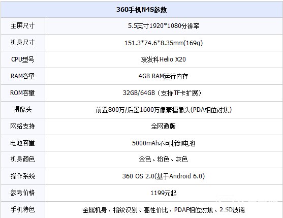 讓我們先來看看360N4S硬件配置參數(shù),具體如下所示: