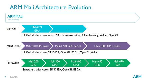 ARM將第三代GPU架構命名為Bifrost(彩虹橋),面向高端市場的Mali-G71是該架構之下的第一款產品,緊隨其后的是面向中端市場的Mali-G51,相較前代均有明顯進步。