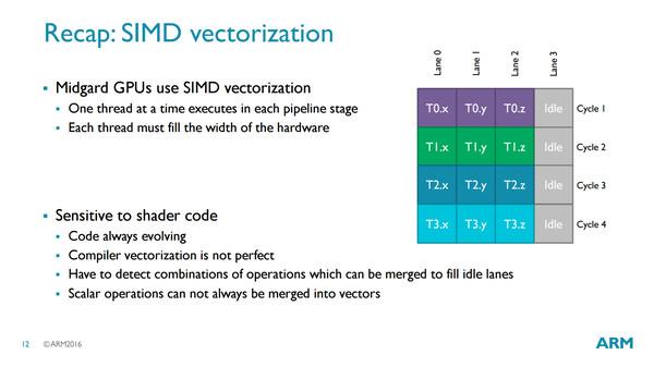 Bifrost架構采用基于Quad的矢量化技術,最高支持四線程同步執行,共享控制邏輯,降低執行單元的填充難度,實現接近100%的使用率,深度匹配開發人員編寫著色器代碼的最新方法(via eeworld)。