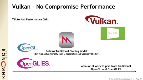 Vulkan是Khronos推出的針對下一個20年的3D圖形應用程序接口,作為OpenGL與OpenGL ES的繼任者,設計時針對移動應用進行了大量優化。
