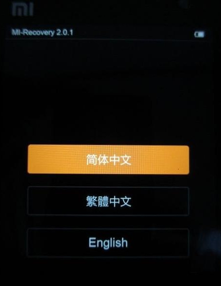 5、手機重新開機后,我們會進入Recovery界面。音量鍵+/-分別是控制上下,關機鍵用來確認。選擇“簡體中文”,進入主菜單。