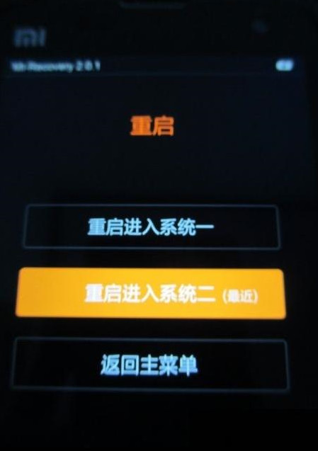 7、清除所有數據后。選擇“重新開機”。這時候,你就會發現兩個系統了。其中一個標注“(最近)”,這就是剛剛使用過的MIUI7了,當然,如果你選擇另外一個,那么開機就會是MIUI6了。等到MIUI完善了,就可以重新升級了。