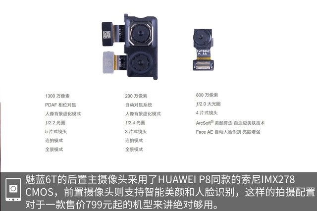 魅藍6T內部結構并不算緊湊,主板和攝像頭很容易就取下來了。