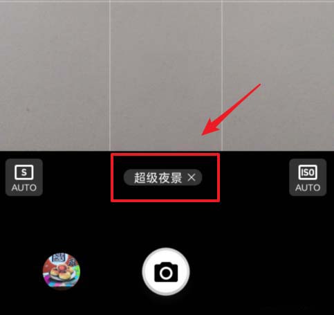 4、進入后,相機界面下方會出現超級夜景的選項。這時說明已經打開了超級已經的模式。