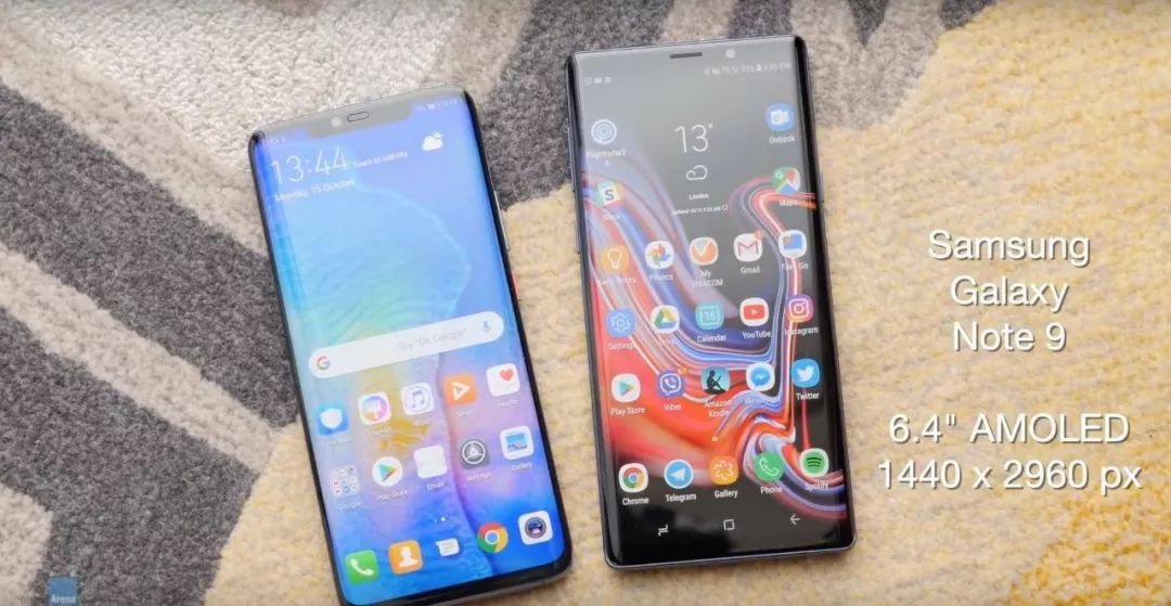 Mate 20 和三星 Note 9 一樣,搭載的都是 6.4 英寸屏幕,相比之下,華為 Mate 20 的頂部和底部都明顯更窄。
