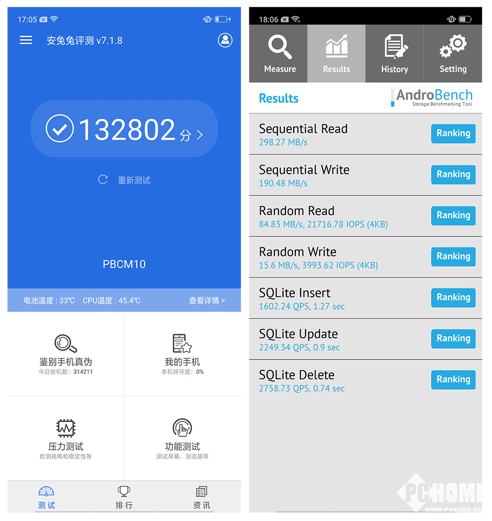 用安兔兔和AndroBench分別對(duì)OPPO R15x進(jìn)行測(cè)試,得出以下結(jié)果: