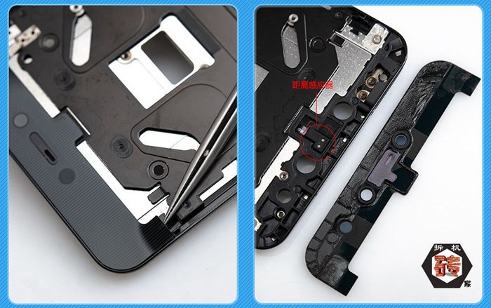 滑蓋的總程是由兩塊金屬鋼板組成,其中一塊可以活動,為了退出這塊活動板一探究竟,需要分離頂部的EPC材料板,分離后發現還隱藏了一個距離感應模塊。