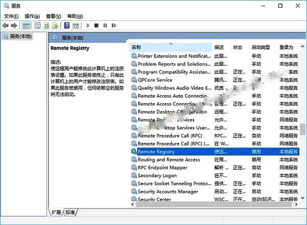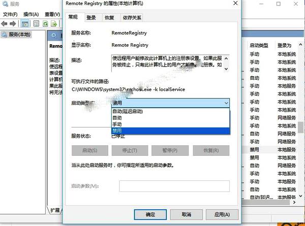雙擊打開Remote Registry設置后,啟動類型改成“禁用”,并點擊底部的“確定”保存就可以了。