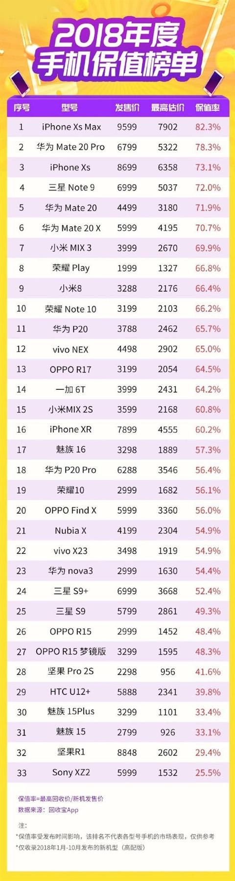 2018年智能手機(jī)保值率排行榜單出爐:前十名華為豪攬五席(2)