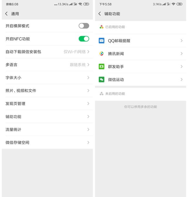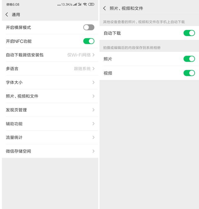 此項功能會將我們所看到的圖片或者視頻直接下載到微信文件里。這項功能可以通過"設(shè)置—通用—照片、視頻和文件"關(guān)閉。對那些沒興趣卻常推圖文的公眾號,可以直接取關(guān)。