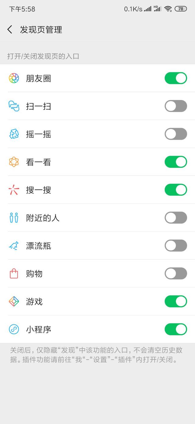 這項輔助功能需要打開定位,向其他用戶信息發(fā)送信息,也接受其信息,所以這項功能非常占空間,在"發(fā)現(xiàn)頁管理"選項中直接選擇停用。