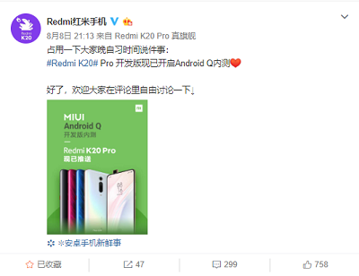8月8日晚間的時候,紅米官方微博宣布,紅米K20 Pro現已推送Android Q開發者內測版。Android Q是谷歌的最新系統版本,雖然目前還在測試階段,但是最后一個測試版系統也已經推送了,那么這就意味著這個新系統很快就會到來。