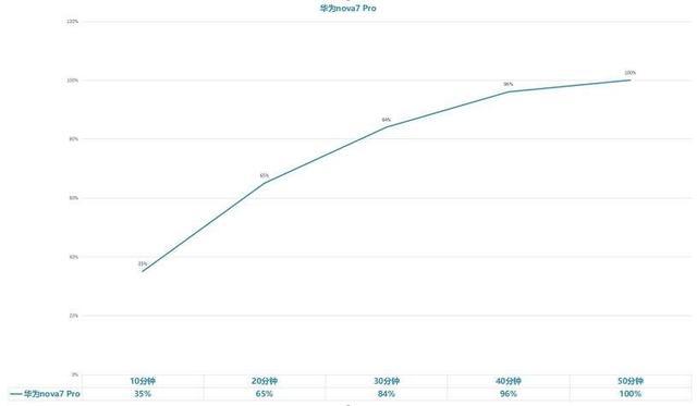 從40W的有線快充來看,華為nova7 Pro的充電速度整體處于較為平均的水平并且保持了速度上的優勢,10分鐘即可充入35%,30分鐘便已經充入到84%的電量,從零充滿也僅僅需要不到50分鐘的時間,十分可觀。