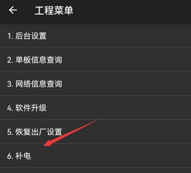 2、輸入完成后會自動進入工程菜單,在其中點擊“6.補電”