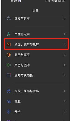 1、打開(kāi)設(shè)置,選擇【桌面、鎖屏與息屏】。