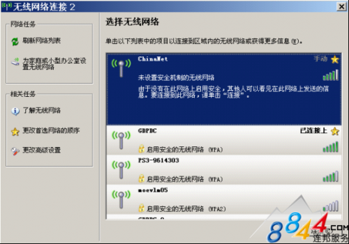 l步驟三:進入“無線網(wǎng)絡連接”對話框,選擇“刷新網(wǎng)絡列表”,查看本區(qū)域內(nèi)可用的無線網(wǎng)絡列表。