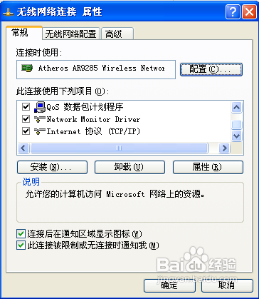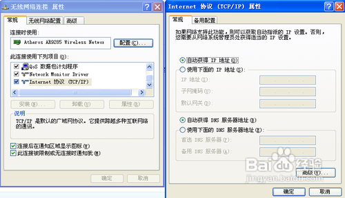 無線網卡屬性,IP自動獲得,點上面的網絡連接-右鍵屬性-無線網絡配置看看網絡是否自動連接: