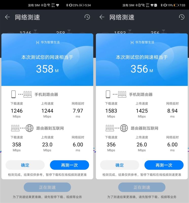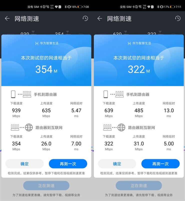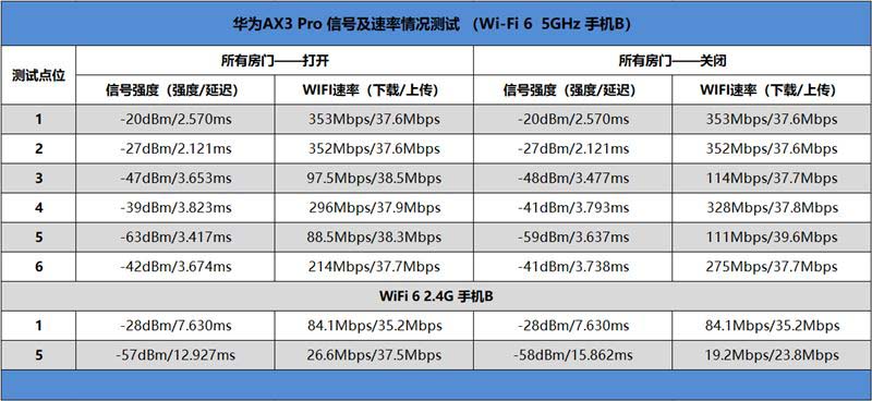 根據(jù)結(jié)果不難發(fā)現(xiàn),采用凌霄芯片的華為路由AX3 Pro在Wi-Fi 6下對于兩款不同Wi-Fi 6方案的手機(jī)都有著不錯的支持,能夠滿足覆蓋整屋的需要。