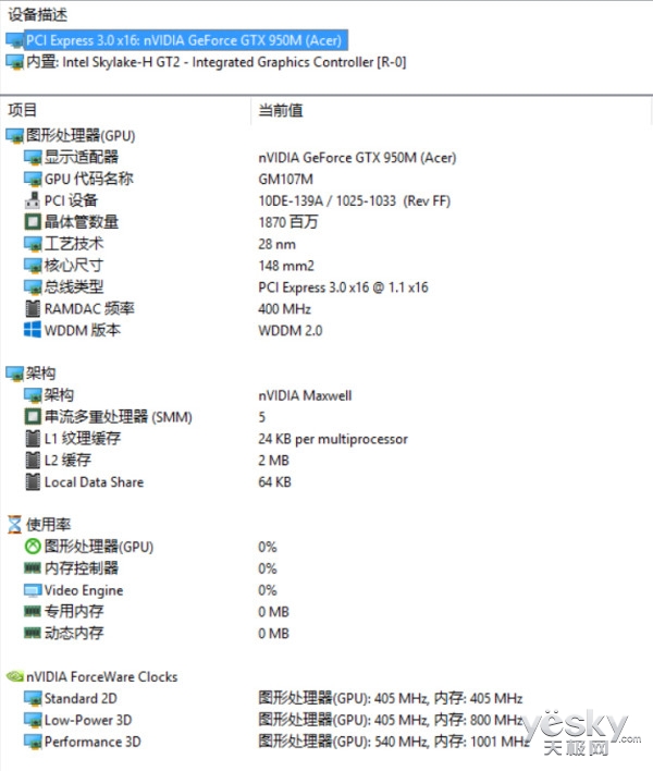 此次評測產品為高配,搭載了英特爾第六代酷睿處理器的i7-6700HQ處理器,采用BGA封裝因此體積更小更適合搭載在筆記本中,性能與E3-1230 V2相仿,在筆記本芯片組性能排行中屬于第一集團軍。強勁的CPU自然搭配了不錯的顯卡GTX 950M,在公布的天梯排行榜上這款顯卡性能大約和臺式機中的GTX750相仿,擁有2G和4G兩個版本,應對一些主流游戲可以說輕而易舉。此外這款產品使用了最新的DDR4平臺(雙內存槽單根8GB)以及可自由選擇機械硬盤、混合硬盤、固態硬盤(本次評測產品搭載混合硬盤8GB閃存+1TB空間),在性能上可以說無懈可擊稱霸一方。