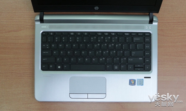該機C面除了鍵盤區域外表面均采用了金屬拉絲工藝,再一次提升了產品質感。在左側掌托處印有一枚ProBook logo,在右側則為Windows和Intel logo。值得一提的是,為了進一步保證商務用戶的數據隱私安全,HP ProBook 430 G3配備了一枚指紋識別,提升了產品安全感。
