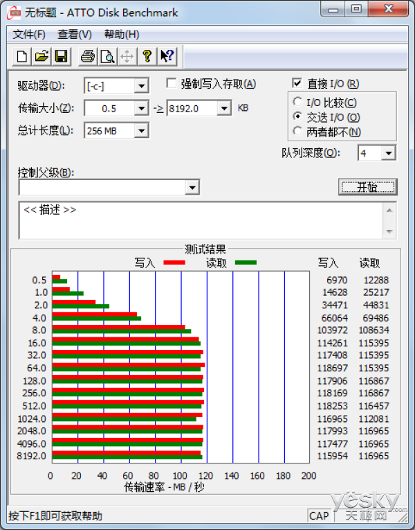 筆者使用atto disk benchmark對該機硬盤進行測試,ATTO軟件也是一直被大家成為跑分王的軟件,其真實表達能力并沒有前面速度軟件那么精準,而更多表現出來的是產品潛在速度,因為制作廠商最早是一家電纜光纖公司。這款ATTO Disk Benchmark軟件就是他們公司開發給客戶用來測試自家產品性能的,當然可能是因為磁盤測試軟件的通用性,再后來開放下載而且完全免費,深受用戶的喜愛。