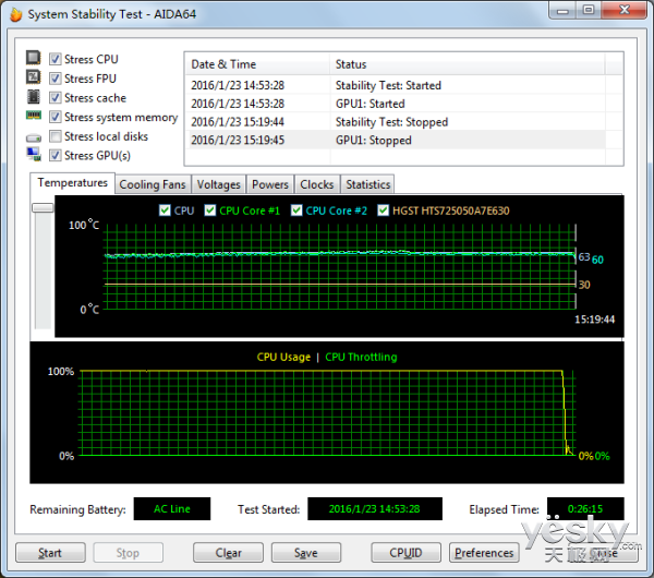 接下來是長時間滿負荷運行的穩定性測試。通過近30分鐘的穩定性測試可以看出,電腦內部器件溫度一直維持著穩定狀態。