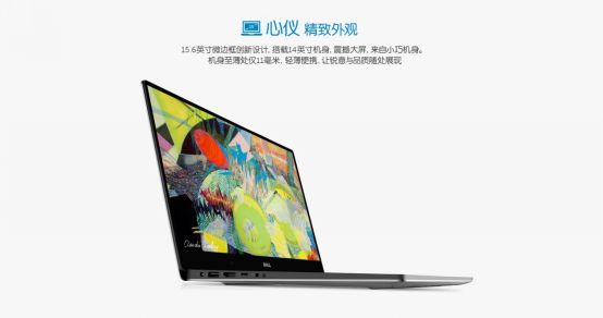 XPS 15沿用了XPS 13上所使用的超窄邊框屏幕設計,屏幕尺寸達到15.6英寸,而機身僅有14英寸。震撼大屏搭載小巧機身,輕薄便攜,讓悅意與品質隨處展現。