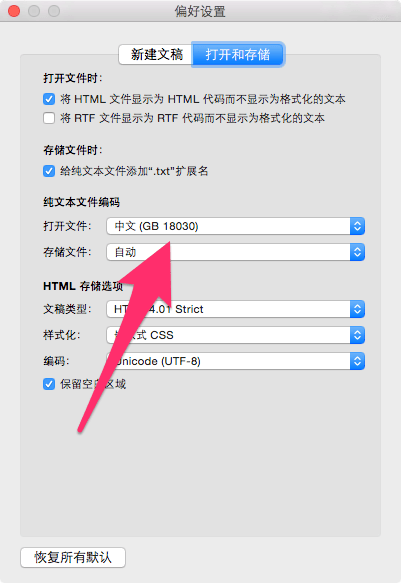 解決方法很簡單:打開「文本編輯.app」,點擊屏幕左上角菜單欄的「文本編輯」>「偏好設(shè)置…」>「打開和存儲」。選擇打開純文本文件的編碼為「中文 GBxxxx」即可。